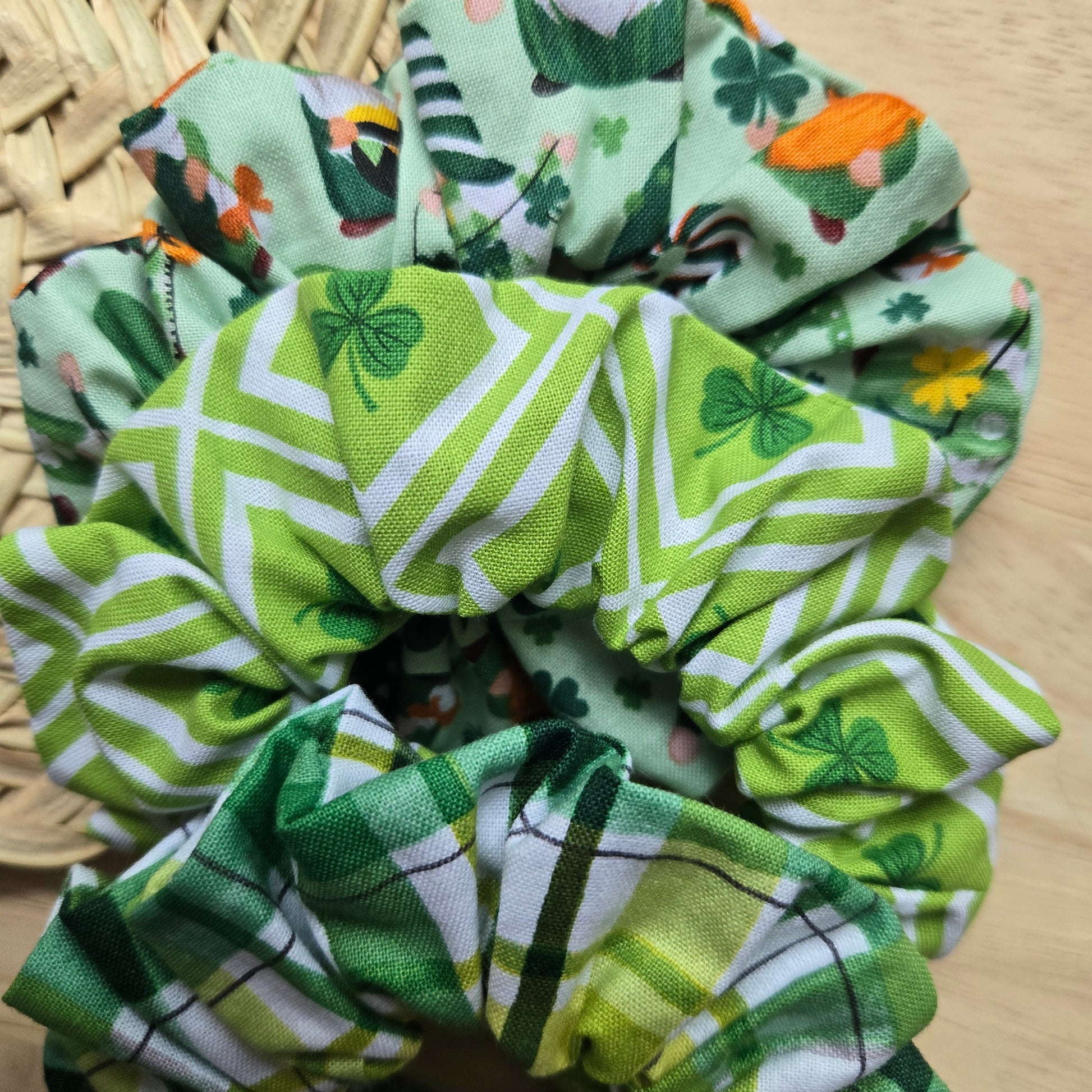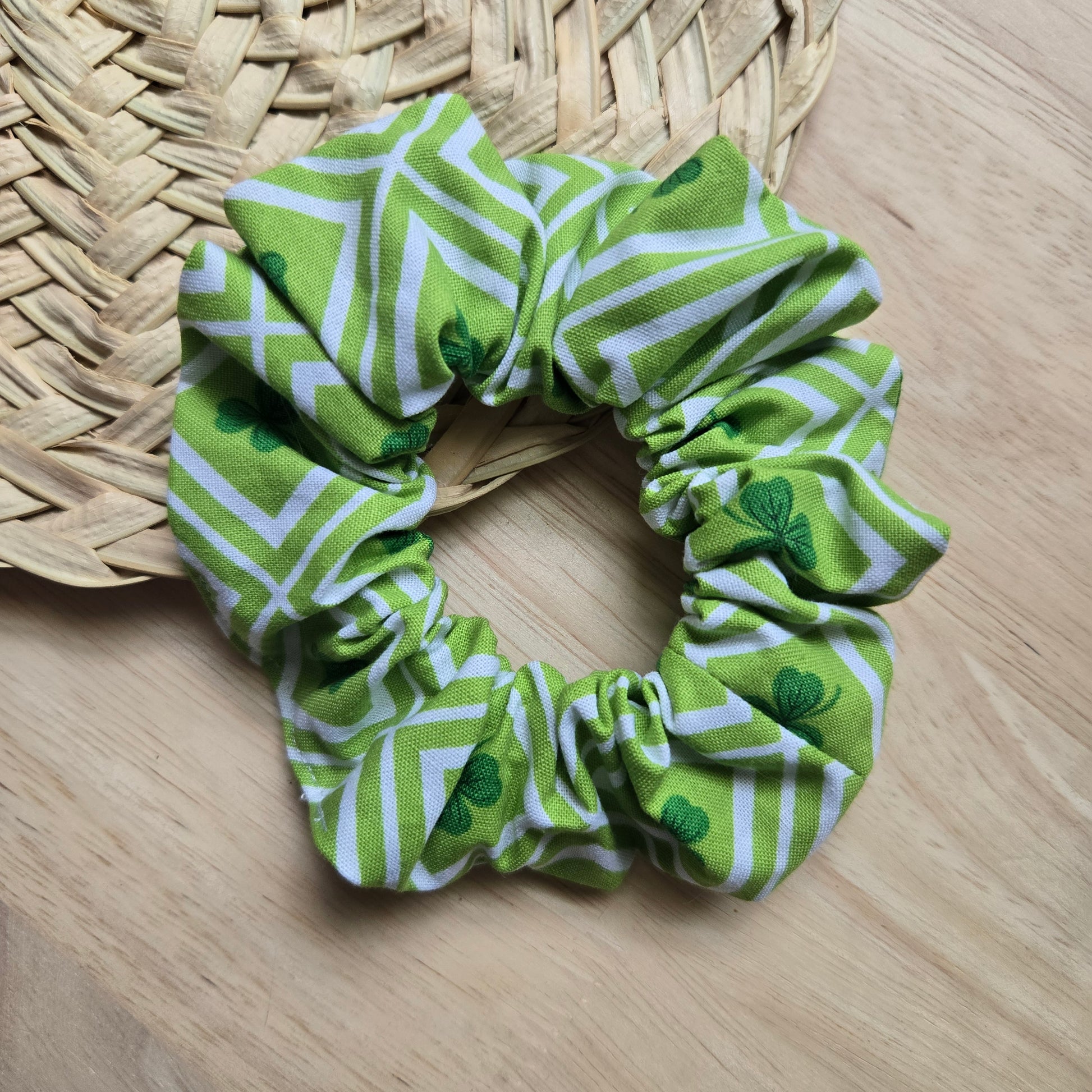 A classic scrunchie in a green and white clover print. Perfect for St Patrick's!